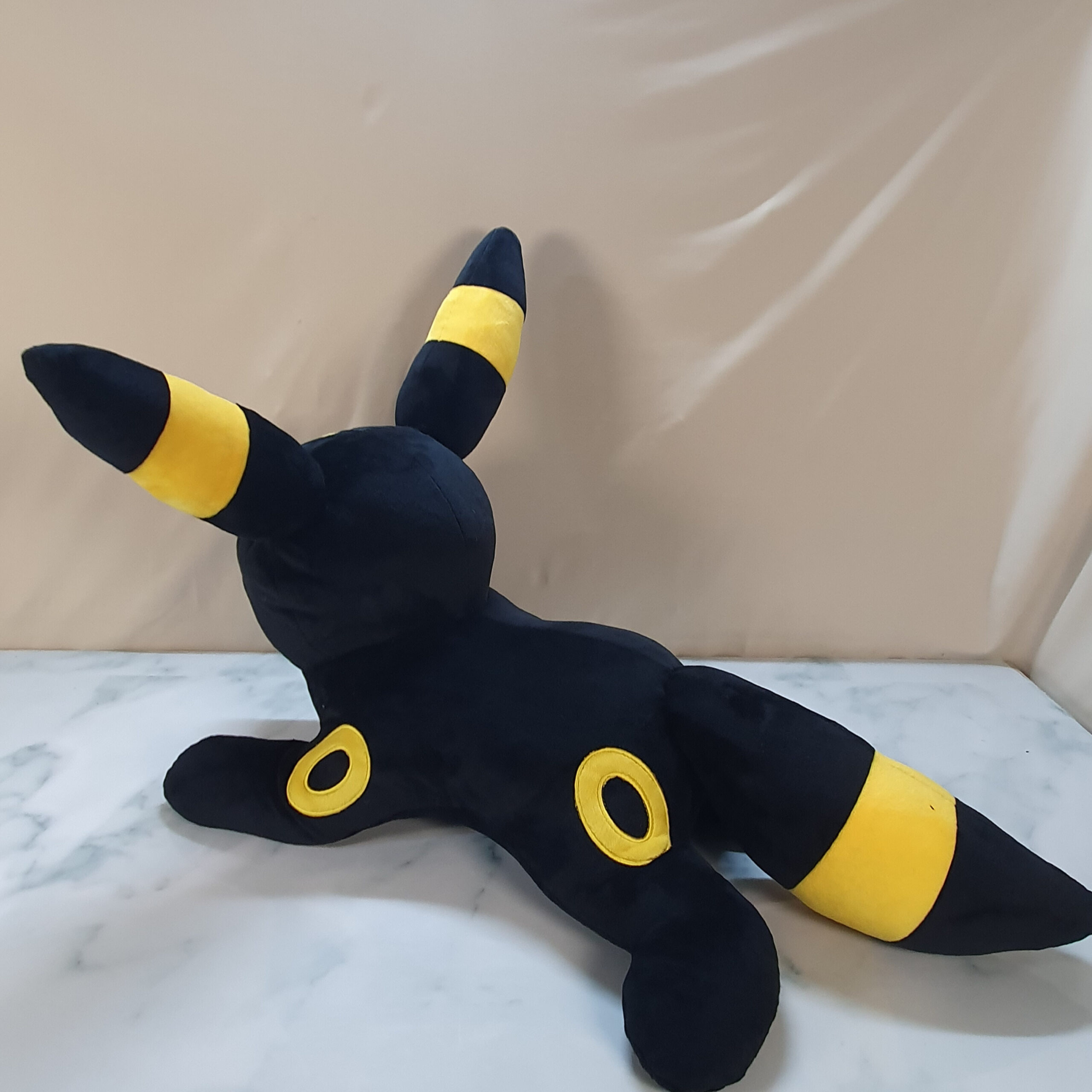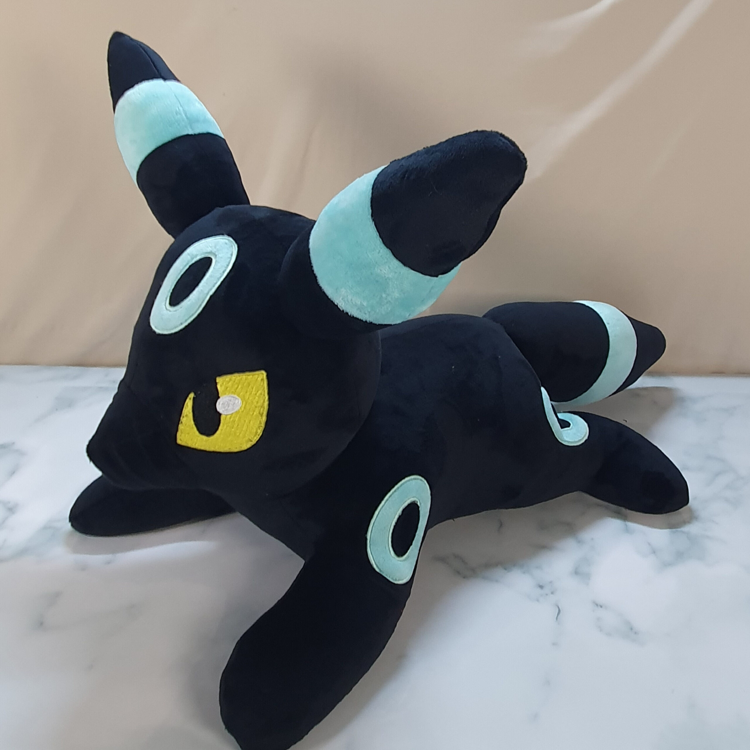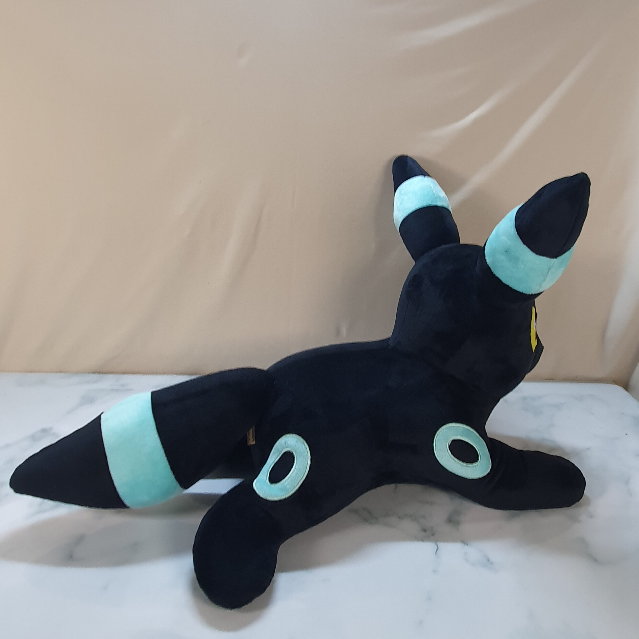 Each Umbreon is individually sewn and weighted in studio using premium soft minky and filled with recycled poly-pellets and poly-fill.