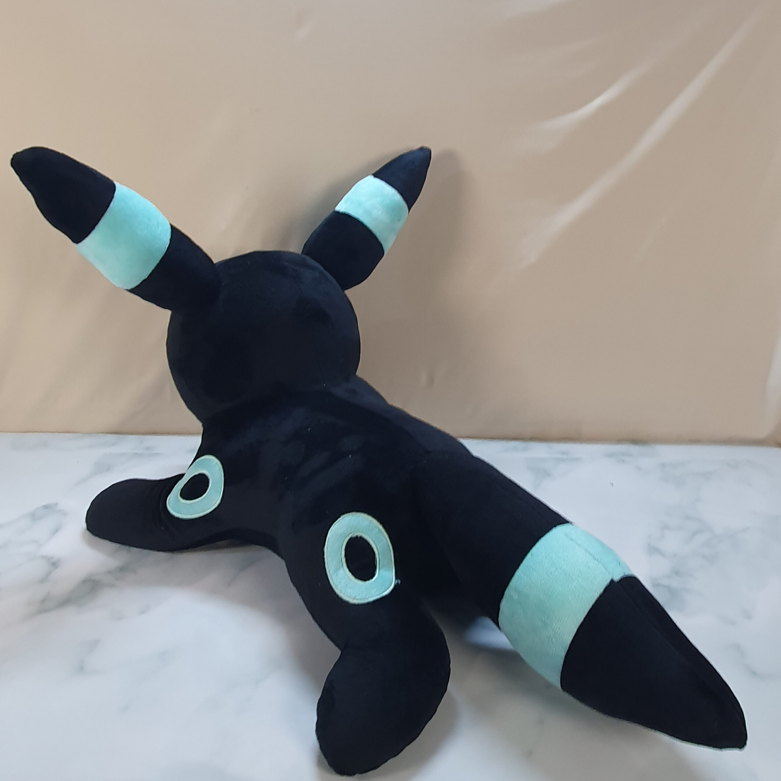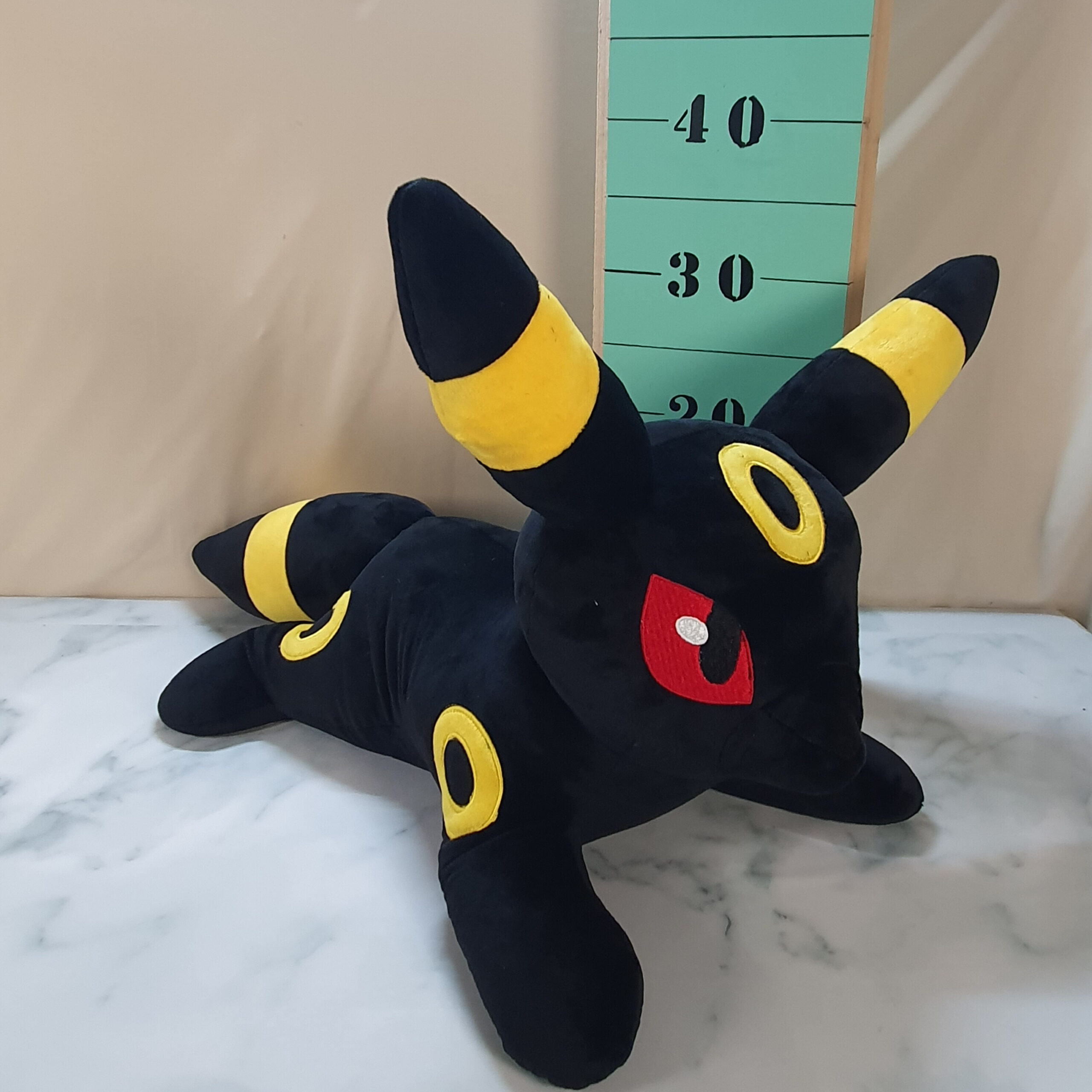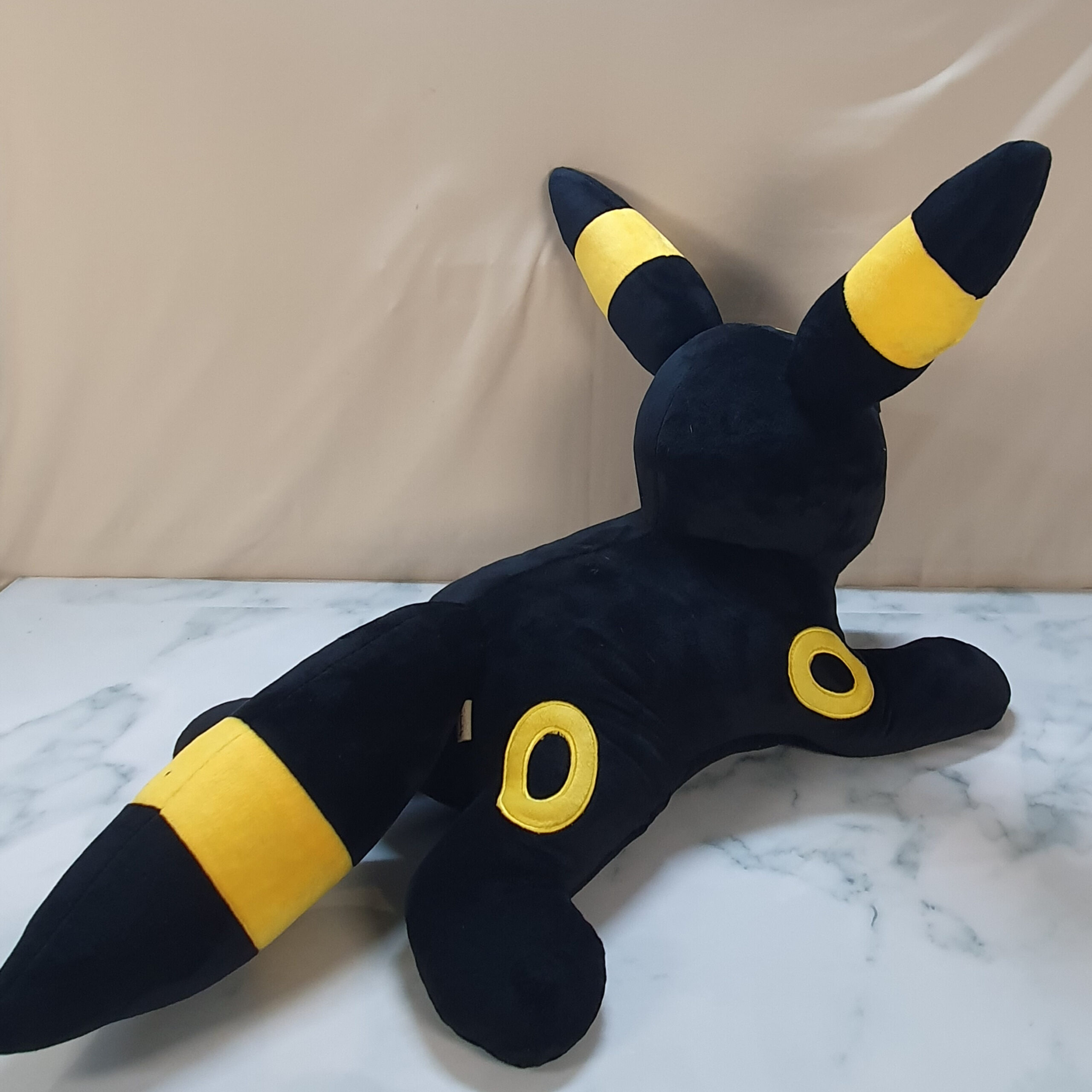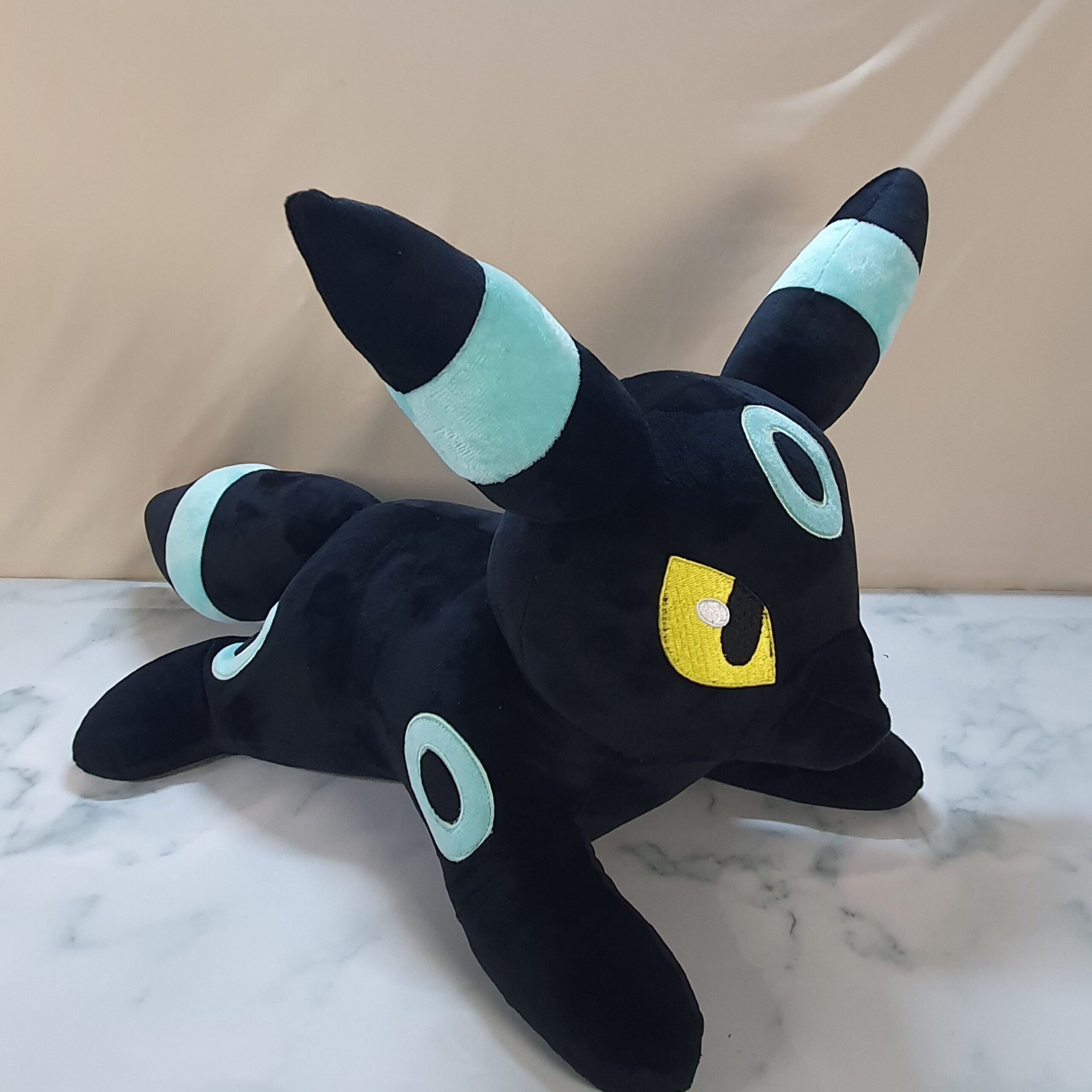 Each Umbreon is individually sewn and weighted in studio using premium soft minky and filled with recycled poly-pellets and poly-fill.